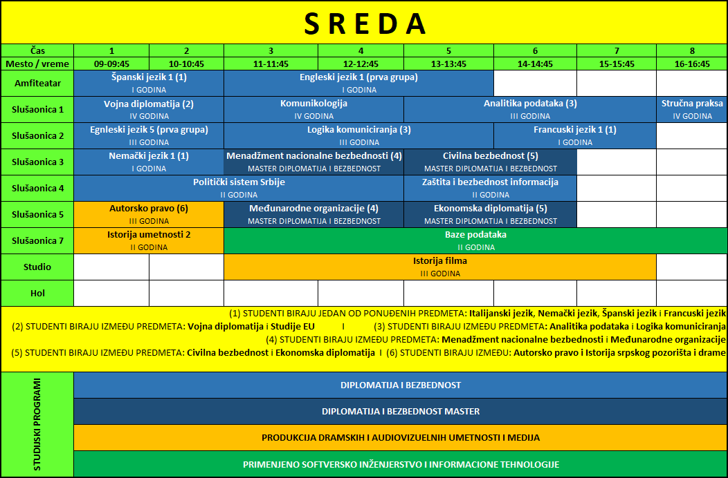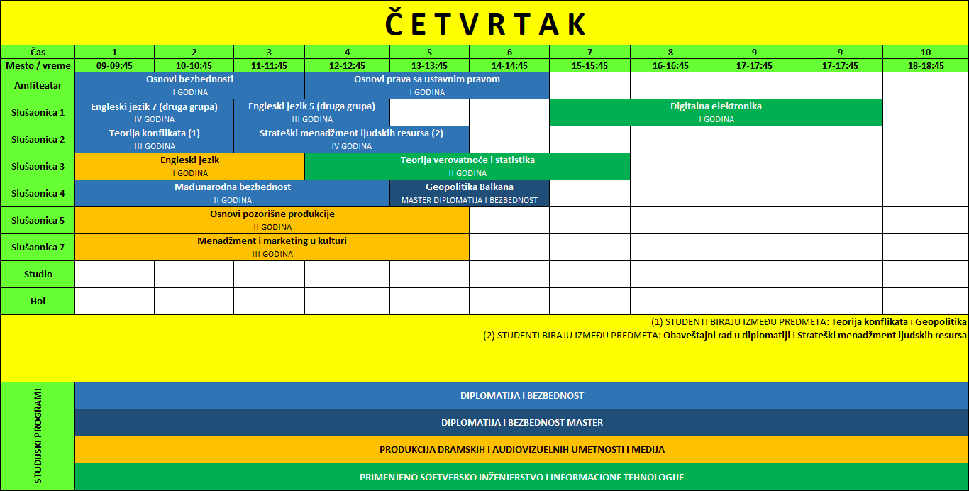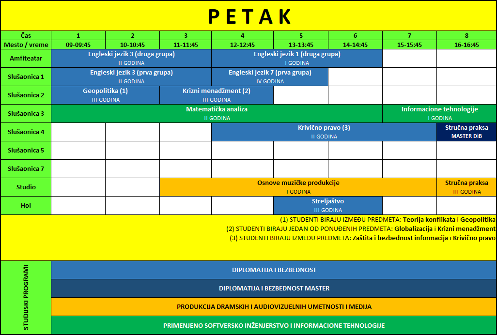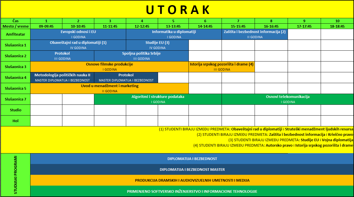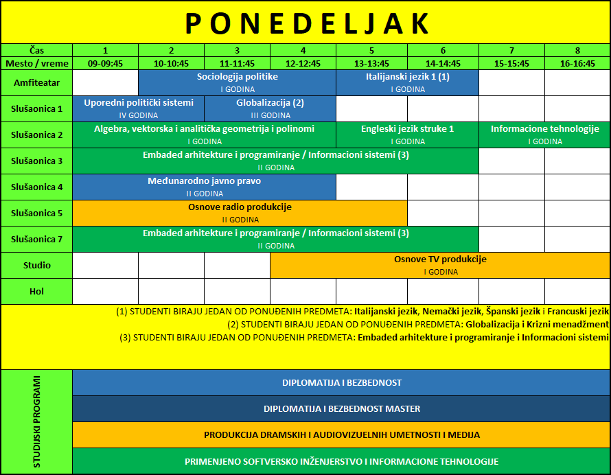 Raspored predavanja | Zimski semestar